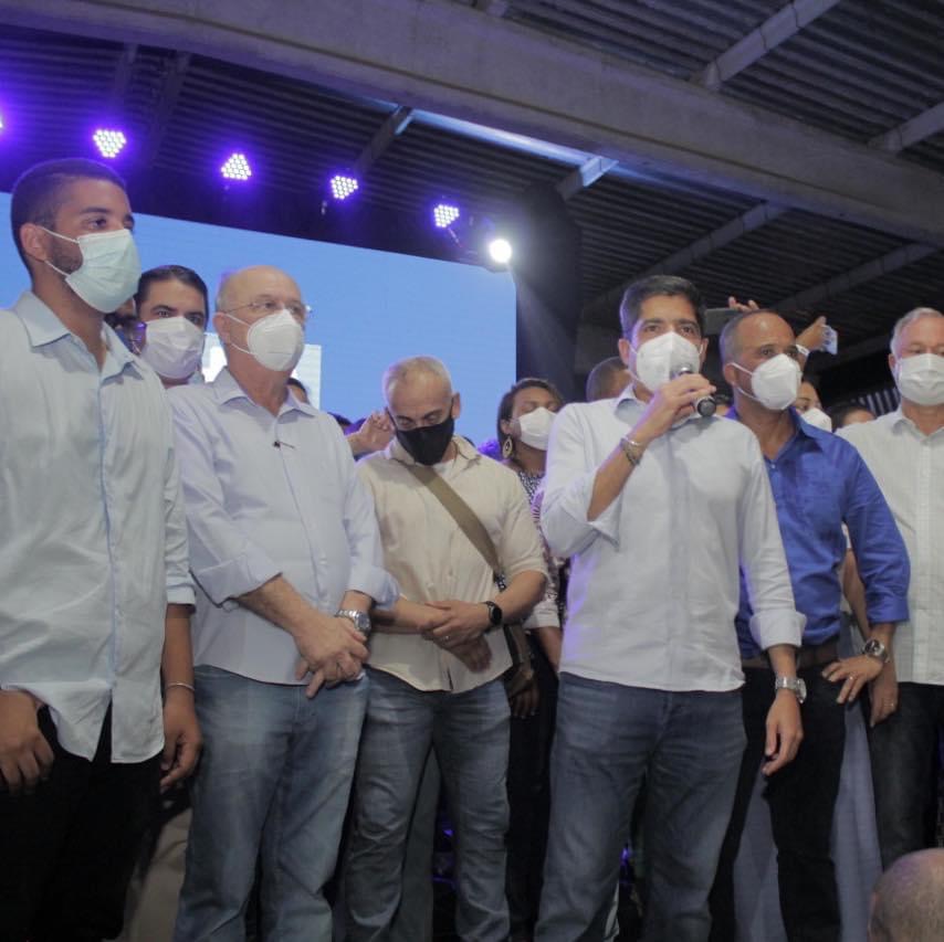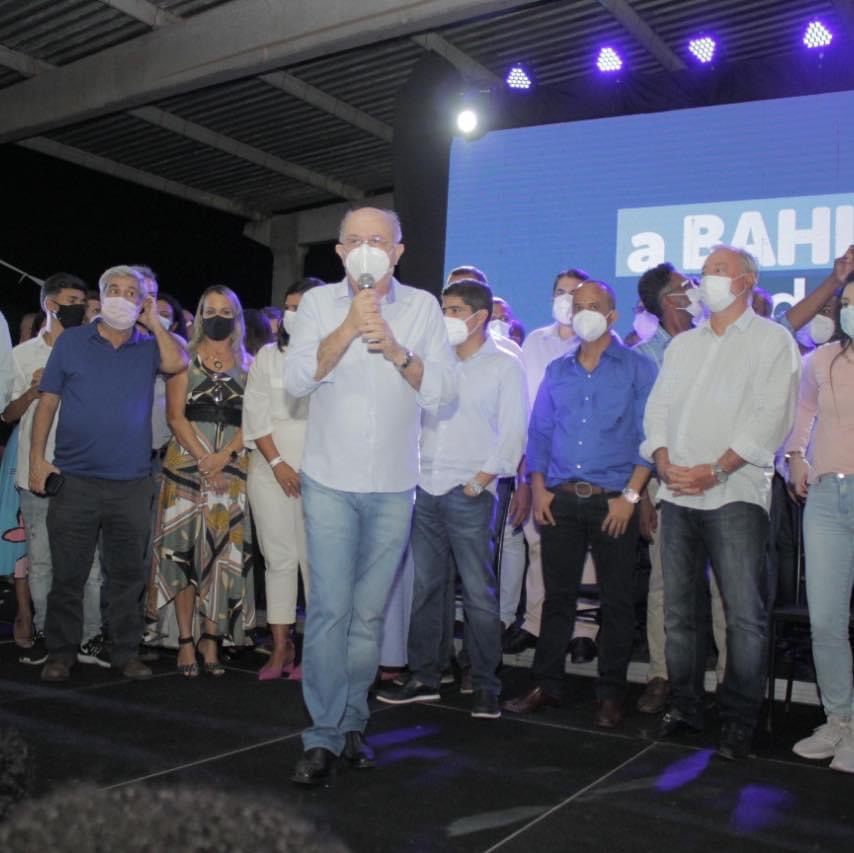 O candidato a governador do estado, ACM Neto (DEM) e o possível candidato a vice-governador ou a senador, José Ronaldo (DEM) participaram da cerimônia de celebração pela emancipação da cidade de Camaçari nesta segunda-feira (27).