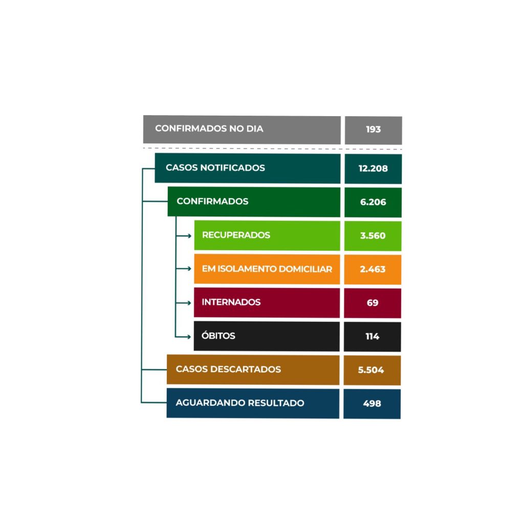Total de casos confirmados no município: 6.206 (Período de 06 de março a 21 de julho de 2020)