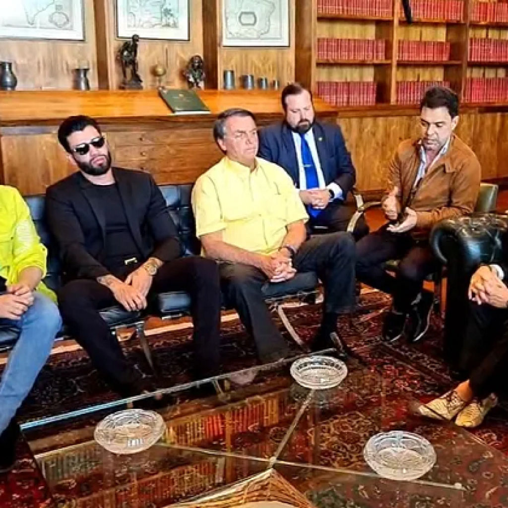 O candidato à reeleição pelo PL, Jair Bolsonaro, recebeu nesta segunda-feira (17), em sua residência oficial em Brasília (DF), os cantores sertanejos Leonardo e Gusttavo Lima, que endossaram apoio ao presidente no pleito do dia 30 de outubro.
