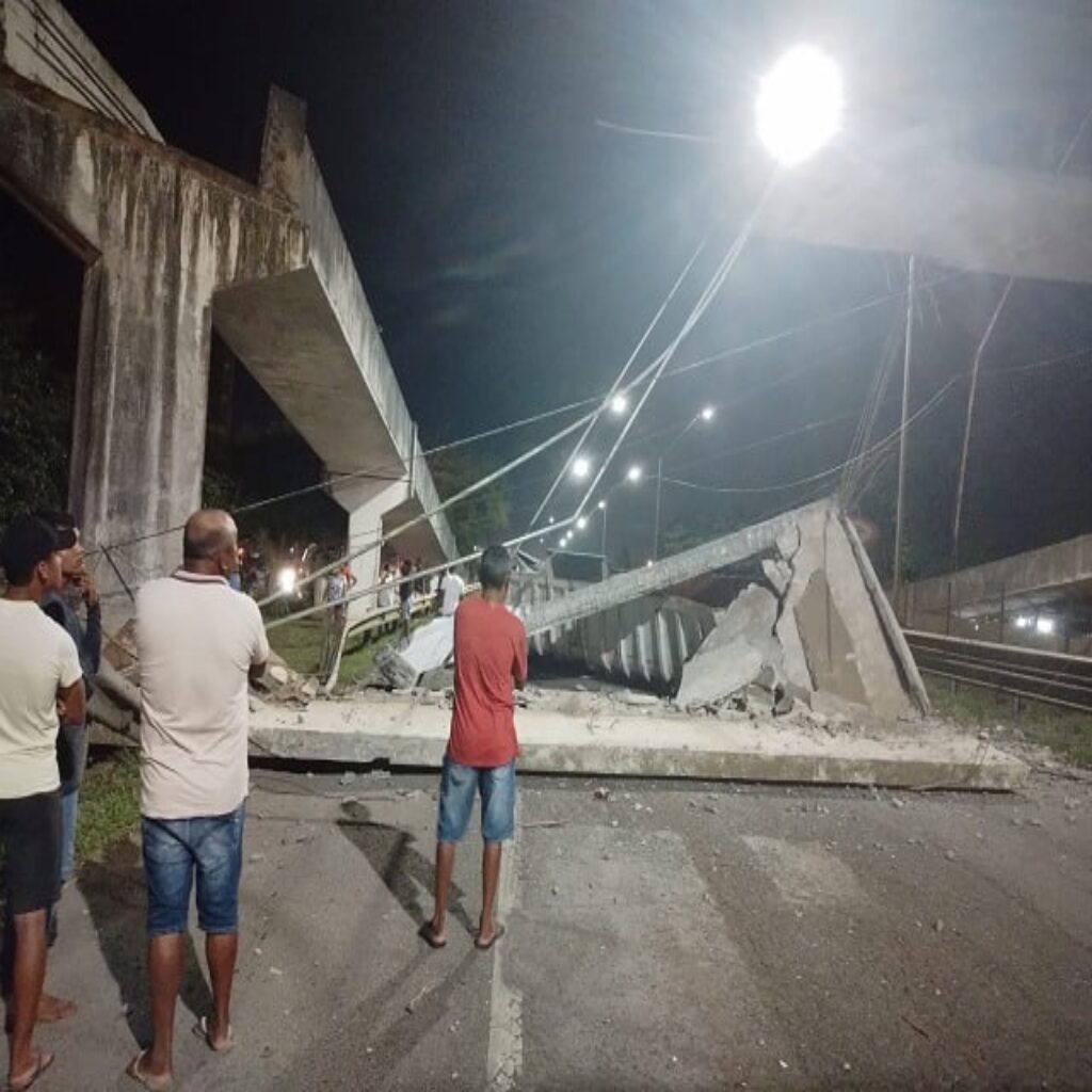 Caminhão colide e derruba parte de passarela em Conceição do Jacuípe