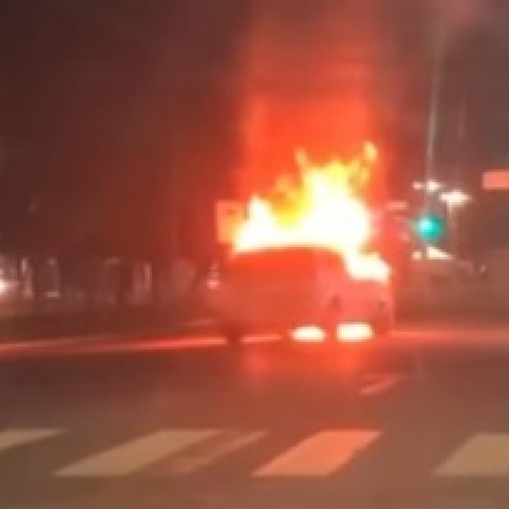 Um veículo, modelo Fiesta de cor branca, pegou fogo na noite de ontem (29) na Avenida Getúlio Vargas em Feira de Santana.
