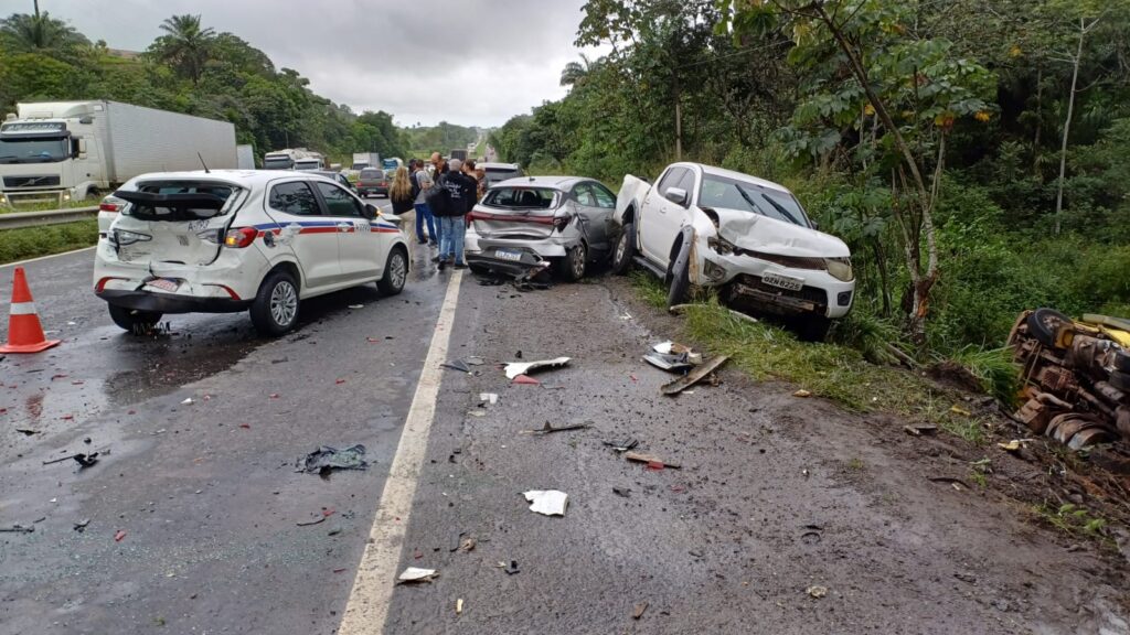 A Delegacia da PRF de Simões Filho segue monitorando a situação. Até o momento, a pista permanece parcialmente interditada, com fluxo controlado no trecho do acidente. As causas do engavetamento ainda estão sendo apuradas.