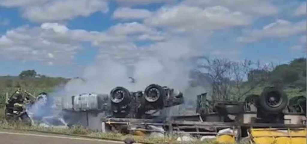 Um caminhão tombou na BA-026, entre Maracás e Planaltino, no sudoeste da Bahia, nesta quinta-feira (17). Segundo a Polícia Rodoviária Estadual (PRE), o motorista, identificado como Natal Rubens Borges da Silva, de 48 anos, morreu após o veículo pegar fogo.