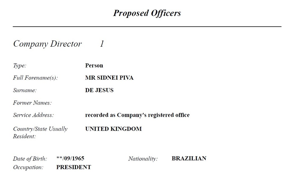 Abertura de empresa de Sidnei Piva no Reino Unido — Foto: Reprodução