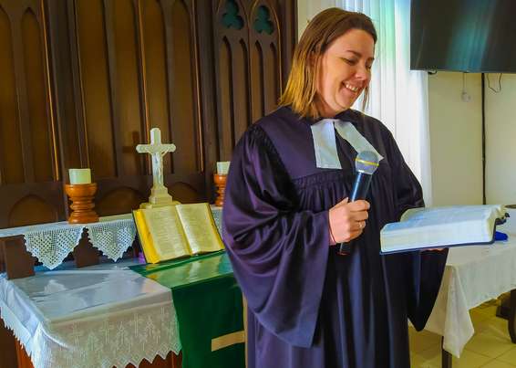 A pastora Jaqueline Weber Kuff comanda os cultos na principal igreja de Arroio do Padre (RS) há seis anos. Sem poder declarar voto, ela diz que jamais votaria em um candidato que defendesse o aborto e o ‘homossexualismo’