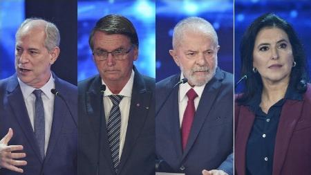 Ciro Gomes, Jair Bolsonaro, Lula e Simone Tebet, em debate do UOL em parceria com Band, Folha e CulturaImagem: Reprodução
