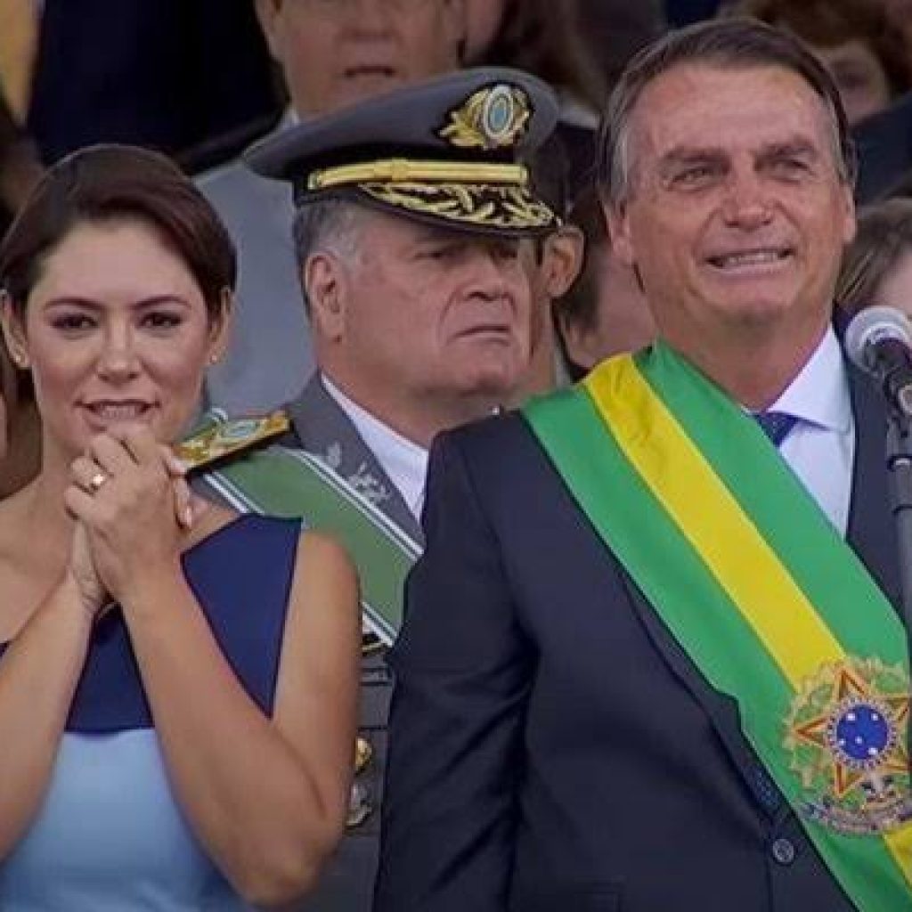 Michelle chegou à Esplanada dos Ministérios acompanhando o presidente Jair Bolsonaro (PL), por volta das 8h40.