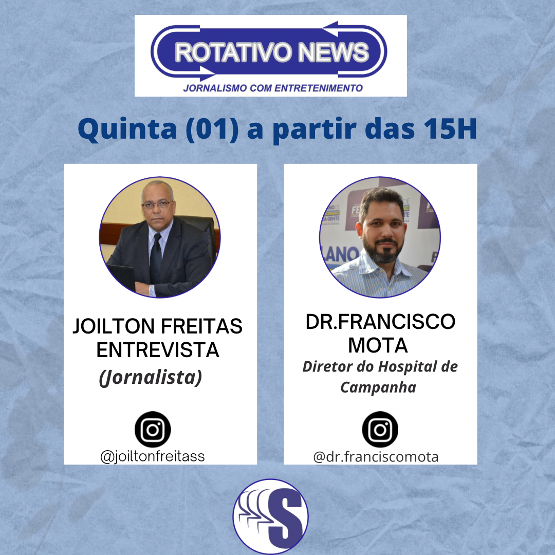 Nesta quinta-feira (01), no quadro Entrevista do Dia teremos a participação do ginecologista, obstetra e diretor do Hospital de Campanha de Feira de Santana, Dr. Francisco Mota, que vai falar sobre os assuntos relacionados à pandemia de COVID-19 no município.