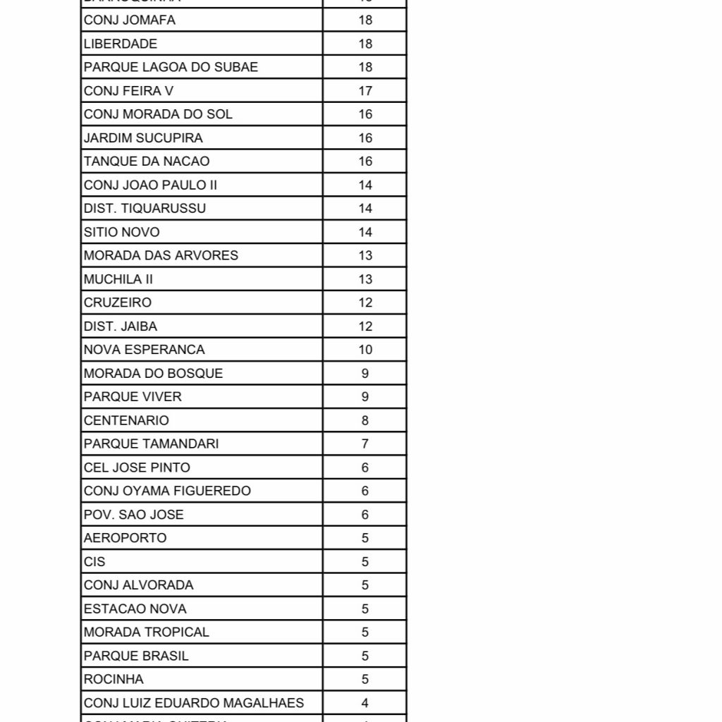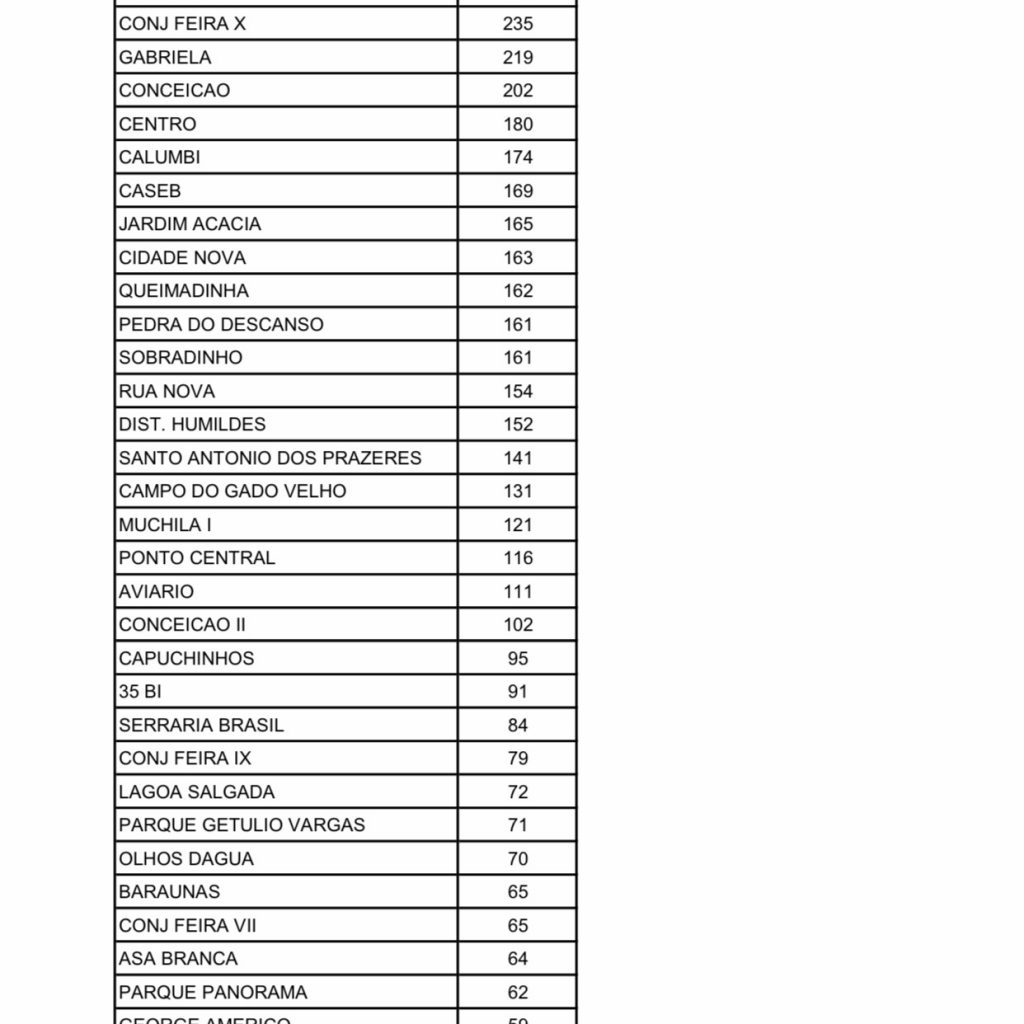 A Prefeitura de Feira de Santana, através da Divisão de Vigilância Epidemiológica da Secretaria Muncipal de Saúde, divulgou nesta sexta-feira (14) a relação atualizada do número de casos de Covid-19 por bairros e localidades.