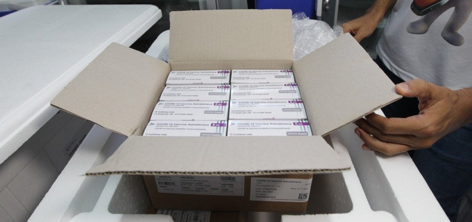 Segundo o secretário, serão 228.250 doses do imunizante da AstraZeneca/Oxford, com previsão de chegada às 13h50, e outras 36.270 da Pfizer/ BioNTech, que desembarcarão no aeroporto de Salvador às 16h20.