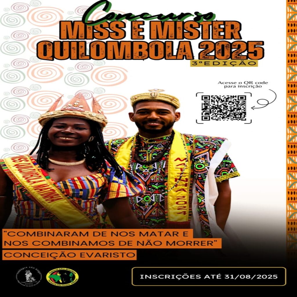 Já estão abertas as inscrições para o Concurso Miss e Mister Quilombola 2025, promovido na comunidade da Matinha. Podem participar homens e mulheres negros, a partir dos 14 anos, moradores de comunidades ou povoados que integram o espaço paroquial do distrito.