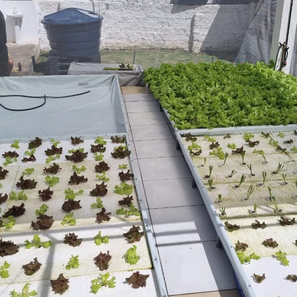 Idealizado pela engenheira agrônoma Maria Clara Figueiredo, o “Lá no Quintal Tem” iniciou com o cultivo de 500 pés de alface (tanto o verde quanto o roxo) hidropônico, ou seja, sem utilização de terra e sim da água. “Tínhamos um quintal de cerca de 200 metros quadrados em desuso, a gente só tinha a goiabeira que já existia quando a gente chegou aqui e a murta. E tivemos a ideal inicial da hidroponia in floating que é uma novidade para a região, que normalmente são utilizados canos, mas aqui temos piscinas flutuantes parecendo de criança mesmo, o que deixa a baixo custo. Começamos com 500 pés de alface que são a capacidade das nossas piscinas”, informou. Para a montagem do cultivo hidropônico foi investido cerca de R$5 mil reais, porém, quem levar a ideia a diante, pode chegar a ter uma renda de R$2 mil reais mensais. E este é um dos objetivos, capacitar pessoas de baixa renda para que através do cultivo em casa, possam se manter. “A ideia é que esse projeto seja replicado para outros quintais de quem tenha interesse, porque a gente quer principalmente garantir renda para outras pessoas já que temos capacidade de fazer isso, trazer capacitação para dentro da ONG além de garantir renda para as mulheres que normalmente são quem cuida de quintais produtivos”, destacou.