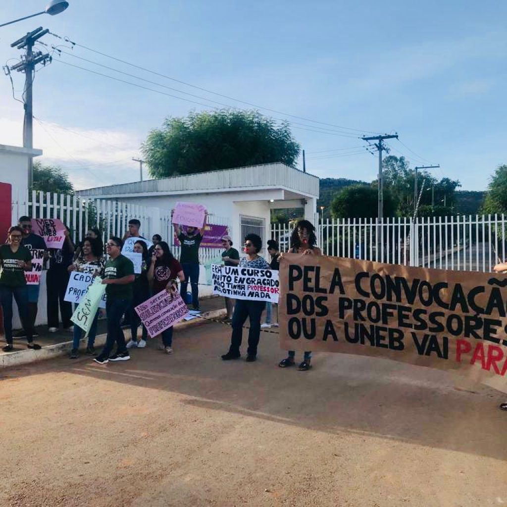 Estudantes da UNEB (Universidade do Estado da Bahia) realizaram uma manifestação durante todo o dia de hoje, 19, cobrando a convocação imediata dos professores aprovados no último concurso realizado em 2022. Os discentes alegaram estão prejudicados diante da falta de professores na instituição.