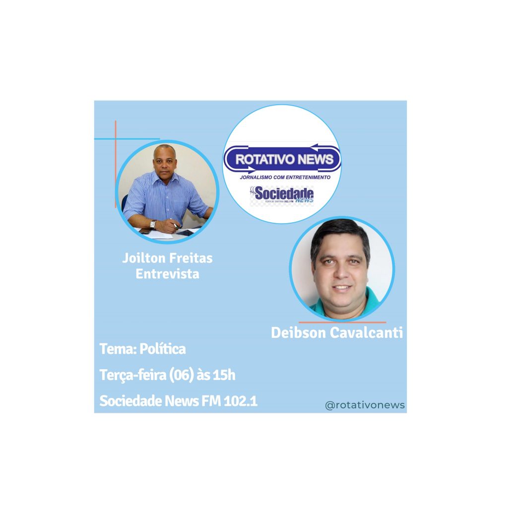 Nesta terça-feira (06), o entrevistado do Rotativo News será o candidato a vice-prefeito de Feira de Santana na chapa de Carlos Geilson (Podemos), Deibson Cavalcanti.