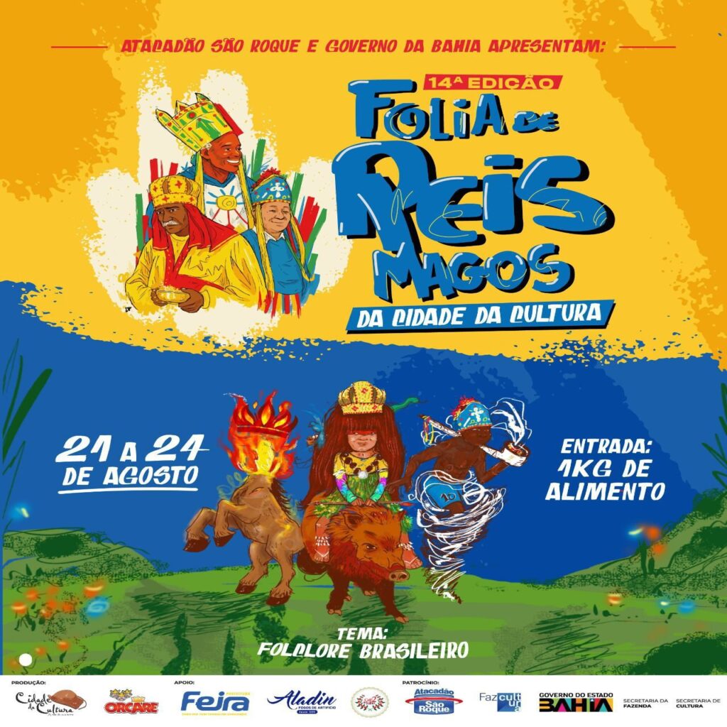 De 21 a 24 de agosto, Feira de Santana será palco da 14ª edição da Folia de Reis da Cidade da Cultura, uma das mais belas manifestações culturais da cidade. O evento reúne cortejo, música, literatura, teatro e religiosidade em um verdadeiro espetáculo popular. A entrada é solidária, 1kg de alimento não perecível destinado a ações sociais.