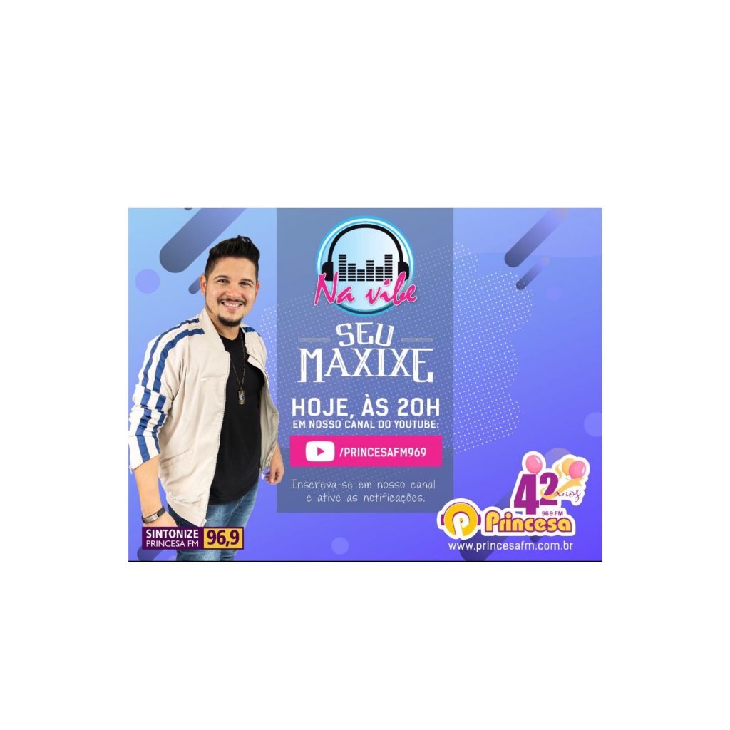 Logo mais às 20h, a Princesa FM apresenta mais uma live comemorativa pelos seus 42 anos. Hoje, a banda Seu Maxixe ficará responsável pela animação.