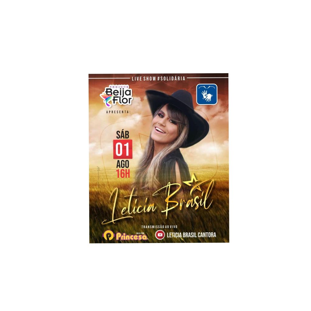 Um encontro para o bem. Assim será a live show da cantora Letícia Brasil que acontece no próximo sábado (01), a partir das 16h, no YouTube. O encontro tem viés solidário, com o objetivo de arrecadar doações para o projeto Beija Flor, iniciativa idealizada pela própria cantora no início da pandemia do novo coronavírus, para beneficiar pessoas em situação de vulnerabilidade social.