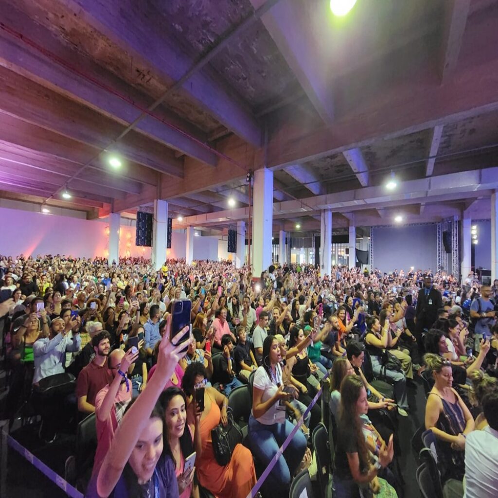 Mas antes de subir ao palco, ela arrastou uma multidão, que gritava seu nome, e que lotou o local da palestra, no melhor estilo Rainha dos Baixinhos.