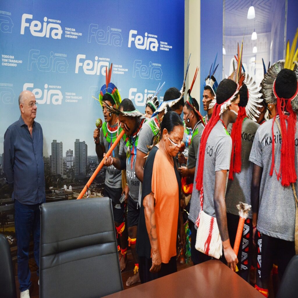 Na manhã desta segunda-feira (13), o prefeito José Ronaldo de Carvalho recebeu, no Paço Municipal Maria Quitéria, a visita de representantes do grupo Arunan Parrancó, integrantes da etnia Kariri-Xokó. Originários do estado de Alagoas, os indígenas realizaram uma apresentação cultural e compartilharam aspectos de suas tradições com o gestor municipal.