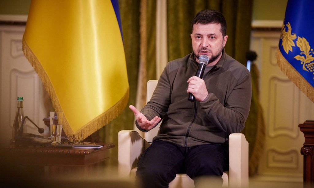 Ukrainian President Volodymyr Zelenskiy speaks during a news conference for foreign media in Kyiv, Ukraine March 12, 2022. Ukrainian Presidential Press Service/Handout via REUTERS ATTENTION EDITORS – THIS IMAGE HAS BEEN SUPPLIED BY A THIRD PARTY.
