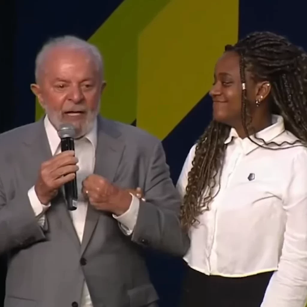 – Essa menina bonita que está aqui. Eu estava perguntando: “o que faz essa moça sentada, que eu não ouvi ninguém falar o nome dela?”. Falei: “Ela é cantora, ela vai cantar”. Aí perguntei (e responderam): “Não, não vai ter música”. Então ela vai batucar alguma coisa. Porque uma afrodescendente assim gosta do batuque de um tambor. Também não é. Aí eu falei: “Nossa, então ela é namorada de alguém”. Também não é. O que é essa moça? Essa moça foi premiada ano que vem como a mais importante aprendiz dessa empresa e ganhou um prêmio na Alemanha. É isso que nós queremos fazer para as pessoas nesse país – disse.