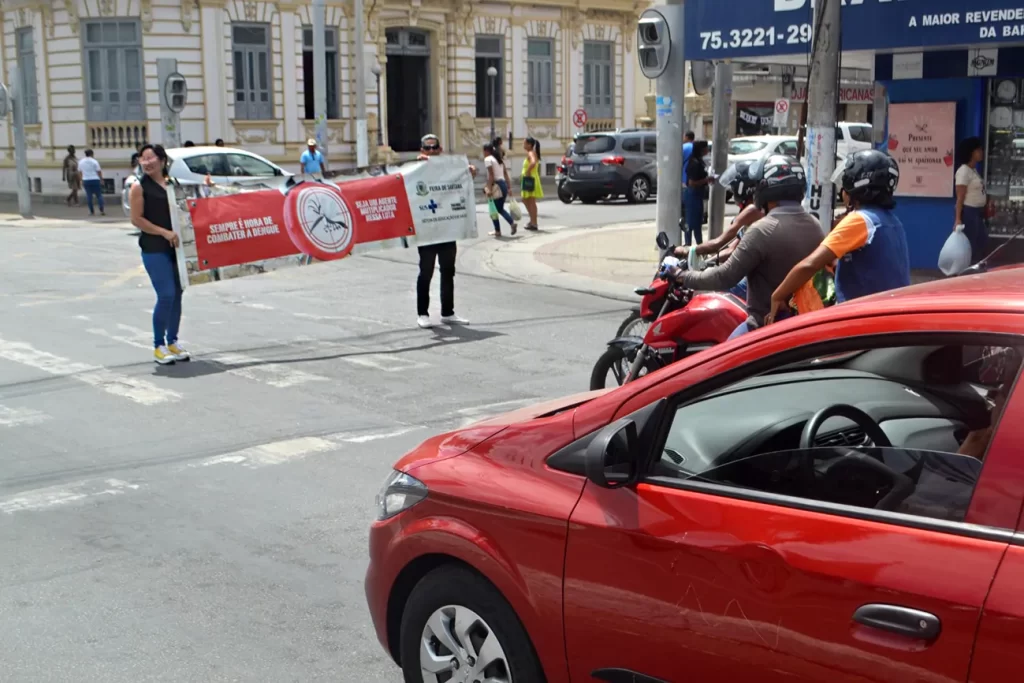 Com o objetivo de ampliar o combate à dengue e conscientizar a população sobre os cuidados necessários para prevenir a doença, a Secretaria Municipal de Saúde (SMS) promoveu nesta quinta-feira (21) uma ação educativa na avenida Getúlio Vargas, um dos pontos de maior circulação de pessoas em Feira de Santana.