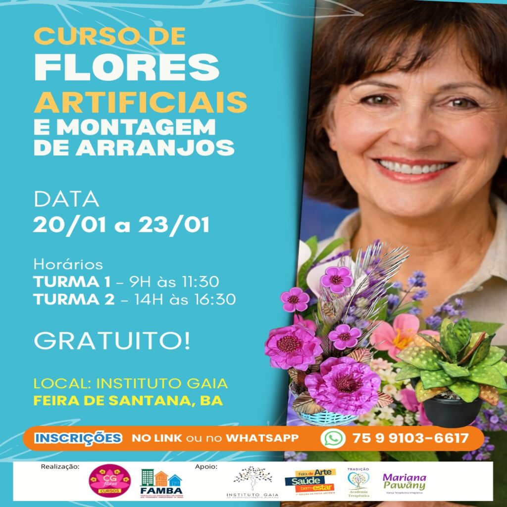 A CG Flores, empresa especializada na capacitação de mulheres por meio do artesanato com flores artificiais, realizará um curso presencial gratuito de Flores Artificiais e Montagem de Arranjos, entre os dias 20 e 23 de janeiro, em Feira de Santana (BA). A iniciativa tem como objetivo promover qualificação profissional, geração de renda e autonomia financeira, aliando técnica, profissionalismo e impacto social. Voltado especialmente para mulheres, o curso oferece uma oportunidade concreta de aprendizado e desenvolvimento, seja para quem deseja iniciar uma nova profissão ou conquistar uma renda extra. A CG Flores acredita no conhecimento como ferramenta de transformação de vidas, fortalecendo não apenas o aspecto financeiro, mas também a autoestima e o protagonismo feminino.