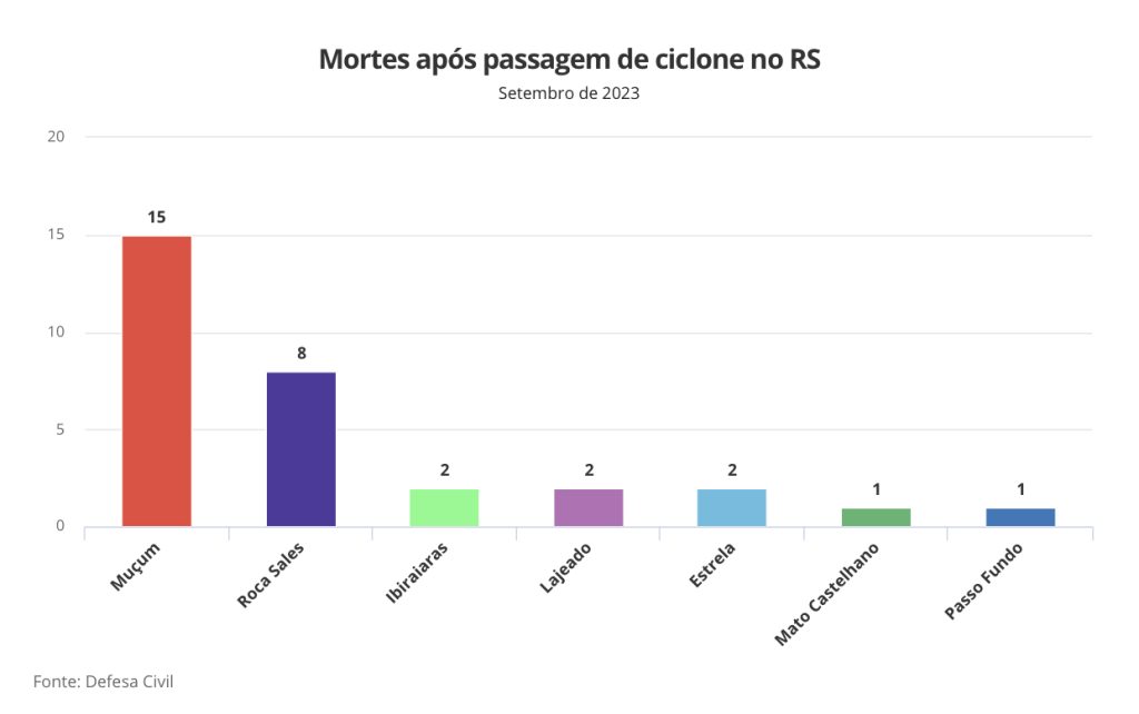 Chegou a 31 o número total de mortes pela passagem do ciclone extratropical que atingiu o estado desde a segunda-feira (4). Nesta quarta (6), o governo confirmou mais dez vítimas, oito em Roca Sales, uma em Lajeado e uma em Estrela, todas na Região dos Vales. (Saiba mais abaixo)