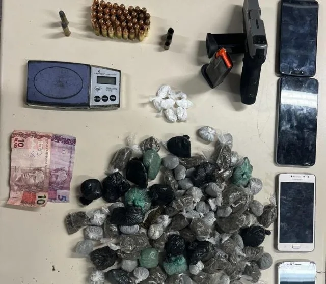 Um homem foi preso na tarde desta sexta-feira (16) no bairro Tomba, após ser flagrado pela Polícia Militar (Rondesp) com arma, munições e drogas. Além disso, a polícia também encontrou com ele aparelhos celulares e balança de precisão.