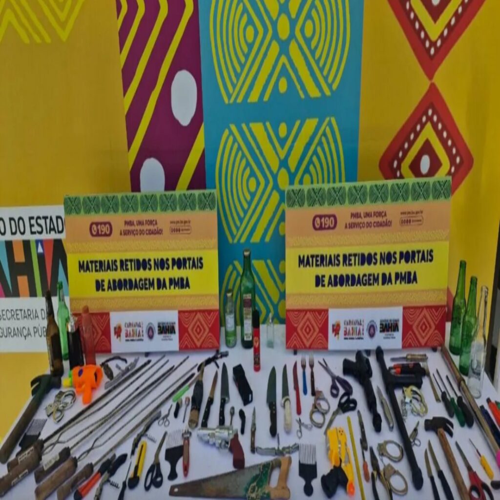A Polícia Militar da Bahia (PM-BA) intensificou a segurança no Carnaval de Salvador, com a retenção de 1.523 objetos proibidos nos portais de acesso à festa entre as 19h de segunda-feira (12) e as 7h de terça-feira (13). Entre os itens apreendidos, estavam uma máquina de choque e um spray de pimenta. No total, desde o início da festa oficial, já foram retidos 6.302 objetos.