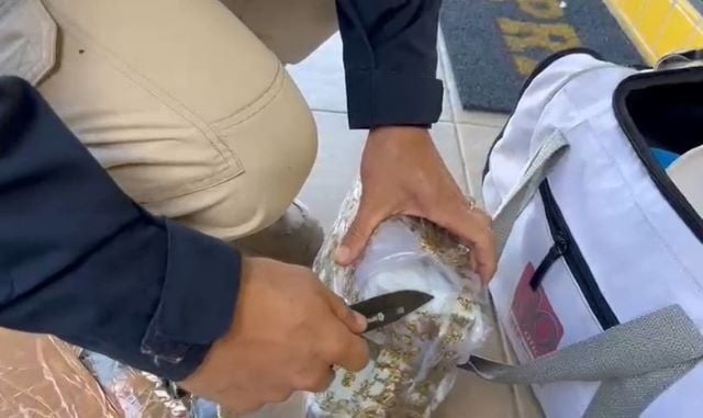 Um dos passageiros apresentou informações desencontradas e ao vistoriar a bagagem de mão, os policiais encontraram dentro da mochila dele, centenas de papelotes de cocaína e alguns tabletes de maconha. Todo o material ilícito estava envolto a sacos de tempero para tentar disfarçar o cheiro. Também foi achada um simulacro de pistola com onze cartuchos a gás comprimido.