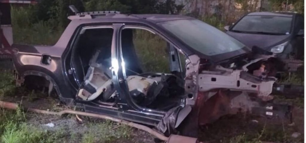 Após os informes, os PMs patrulharam a pé na área de mata fechada e se depararam com a carcaça de cinco veículos, modelos Nissan Sentra, Fiat Strada, Fiat Toro, Renault Duster Oroch e Chevrolet GM, de placas QPU 6i97, PLP 4D97, PLS 5h36, PJX 6794 e RFS 3b25, respectivamente.