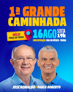 O candidato a prefeito José Ronaldo (União Brasil) convida os feirenses para a 1ª Grande Caminhada de sua campanha eleitoral, que será realizada nesta sexta-feira (16), às 19h, no bairro do Tomba. A concentração será na rua do México, nas imediações da praça da feira livre, de onde seguem em direção ao conjunto Feira X.