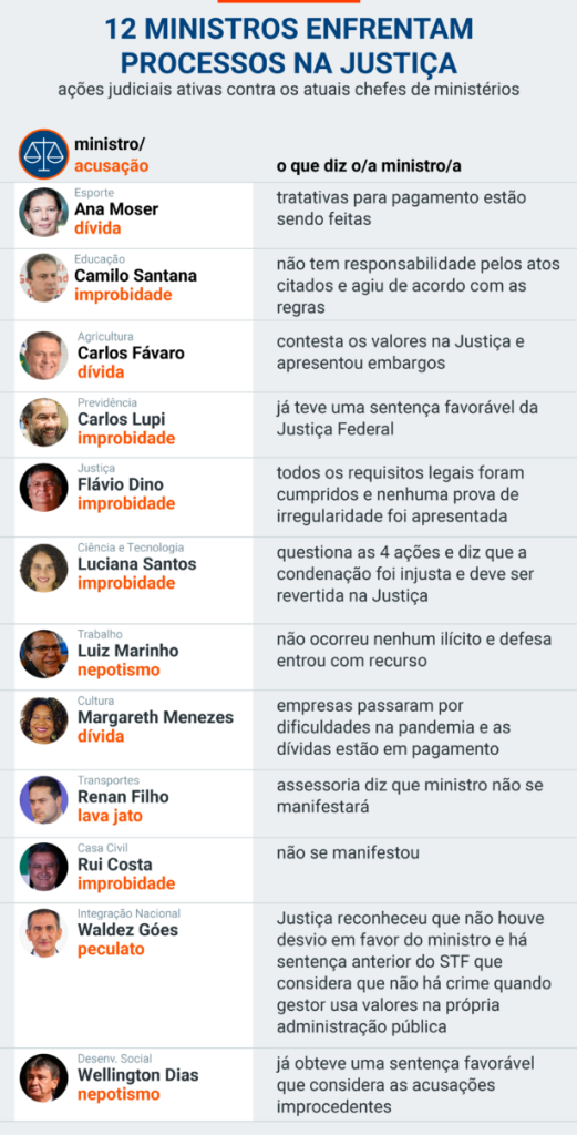 De sentença de prisão a cobranças por dívidas e IPTU atrasado, são 22 processos ativos contra os chefes das pastas