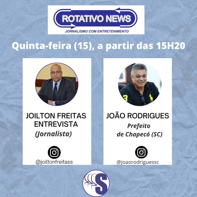 O prefeito de Chapecó (SC), João Rodrigues (PSD) vai participar do quadro Entrevista do Dia, nesta quinta-feira (15) no programa Rotativo News com Joilton Freitas. O gestor é um empresário, radialista e político brasileiro, filiado ao Partido Social Democrático. Será a partir das 15 horas, na Rádio Sociedade News FM 102,1.