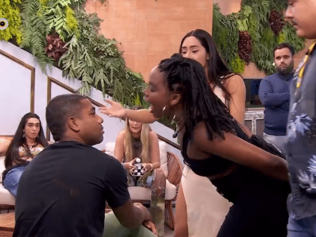 Yasmin conversava com Matteus sobre as atitudes de Davi e o acusando de “passar pano” para o amigo, quando Davi entrou na conversa e a discussão escalonou.