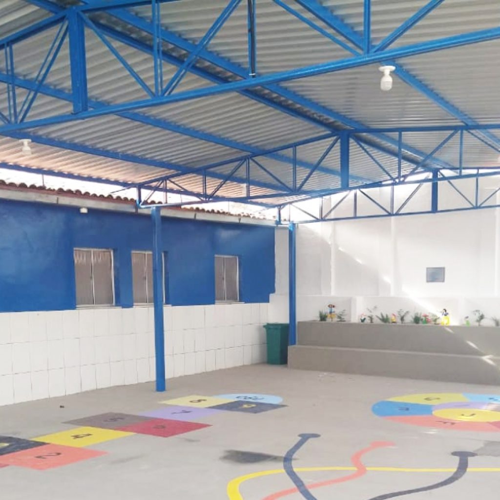 O espaço possui cobertura, área para jogos e parquinho.