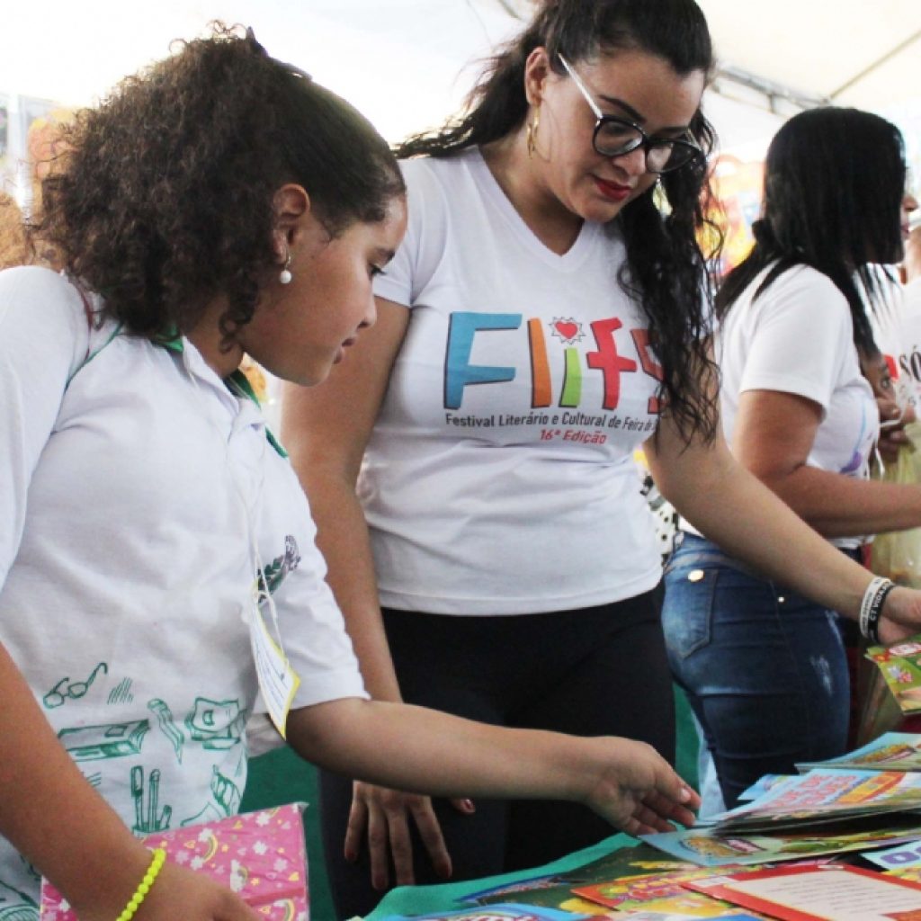 Pela primeira vez no Festival Literário e Cultural de Feira de Santana (Flifs), a estudante Camile Oliveira, de 8 anos, garantiu a compra de livros com o vale disponibilizado pela Prefeitura. Durante toda a semana, alunos de 65 escolas municipais, entre a sede e distritos, visitaram o evento.