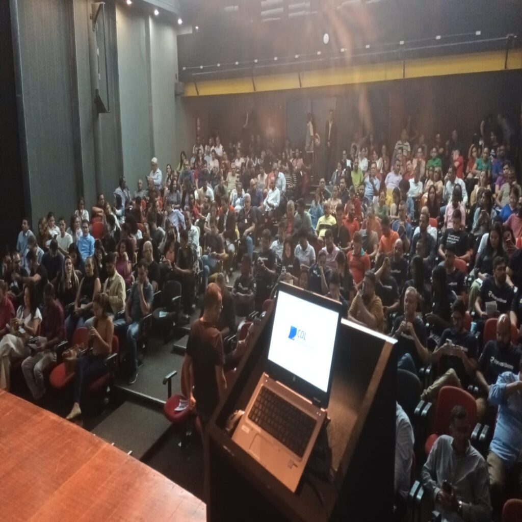Acima do esperado. Assim pode ser definida a palestra de Erik Penna no teatro da Câmara de Dirigentes Lojistas de Feira de Santana (CDL), na noite desta quinta Feira (16). “Como Encantar Clientes” foi o tema do evento que atraiu o interesse de mais de 400 pessoas, principalmente comerciantes, lojistas e trabalhadores do comércio. O evento teve as vagas esgotadas e a organização conseguiu acomodar um número maior que o previsto, já que mesmo sem a inscrição alguns interessados apareceram no local para uma tentativa de última hora.