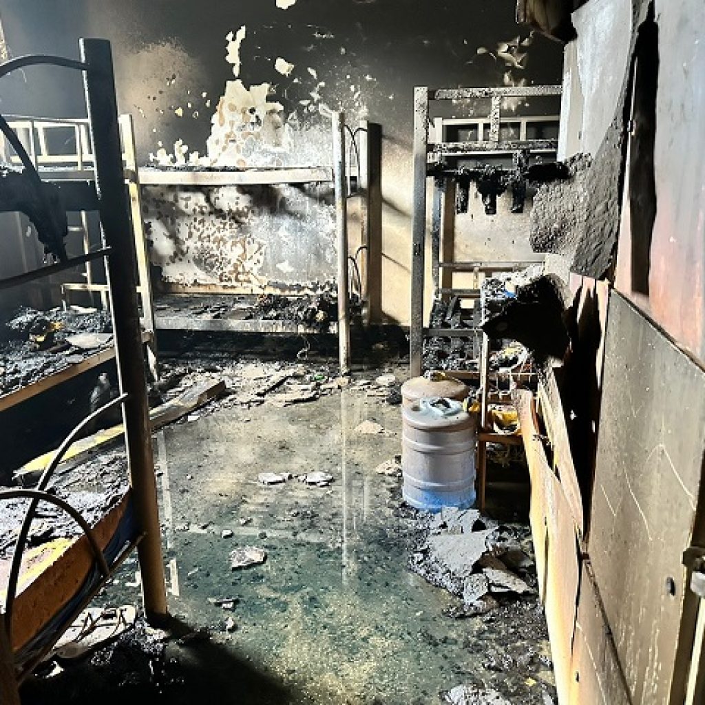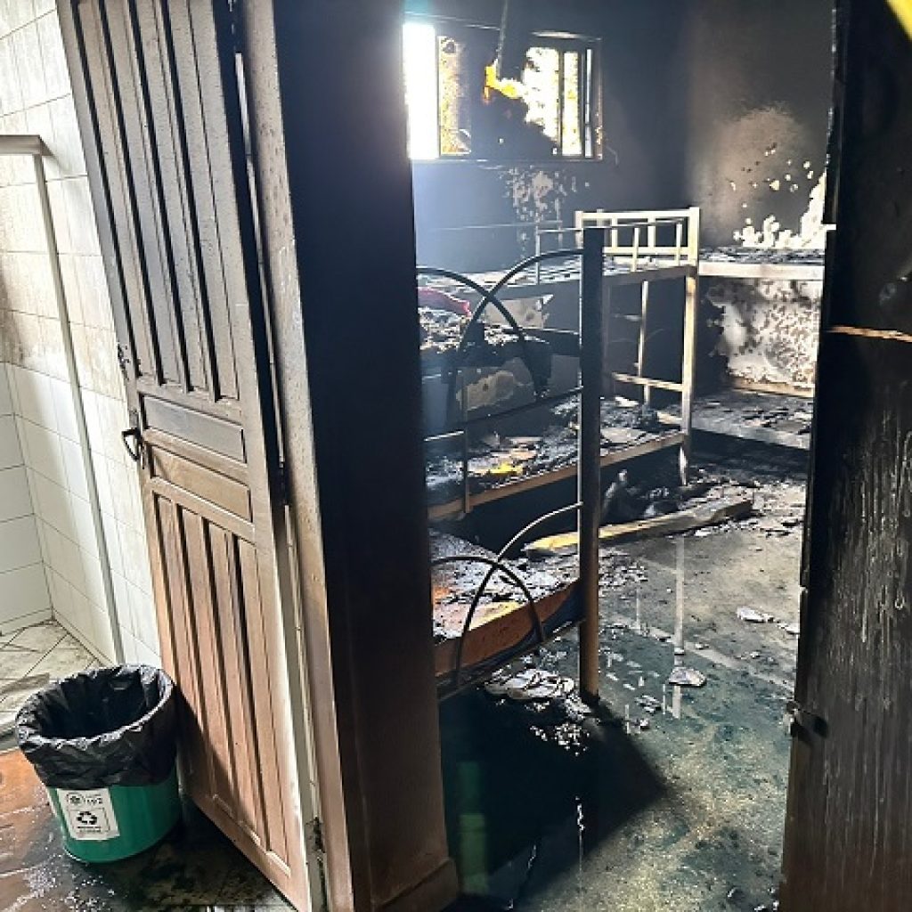 “Nós ainda não temos um relatório oficial para fazer o nosso plano operativo, saber o custo e de fato o que foi danificado. A área, que foi um alojamento feminino, onde aconteceu esse incidente, está isolado desde o momento que aconteceu, e nós ainda não adentramos no local e não recebemos o relatório oficial. Nesse alojamento havia beliches com os seus colchões, armários, bancada, filtro de água, uma estrutura para agregar e acolher as técnicas de enfermagem”, informou.