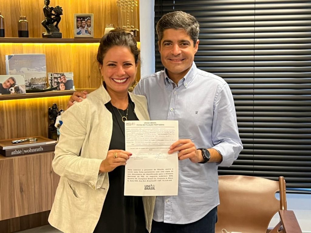 A deputada estadual Mirela Macedo oficializou, nesta terça-feira (29), o apoio à pré-candidatura de ACM Neto ao Governo da Bahia. A parlamentar se filiou ao União Brasil na tarde de hoje, e vai seguir na base do ex-prefeito de Salvador durante as eleições de 2022.