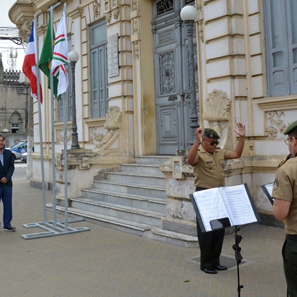Nas escadarias do Paço Municipal Maria Quitéria, onde funciona a Prefeitura, alunos do Colégio João Paulo I homenageiam o município com a cantata “Vivendo Feira: Ontem, hoje e sempre” ainda na segunda-feira, às 16h.