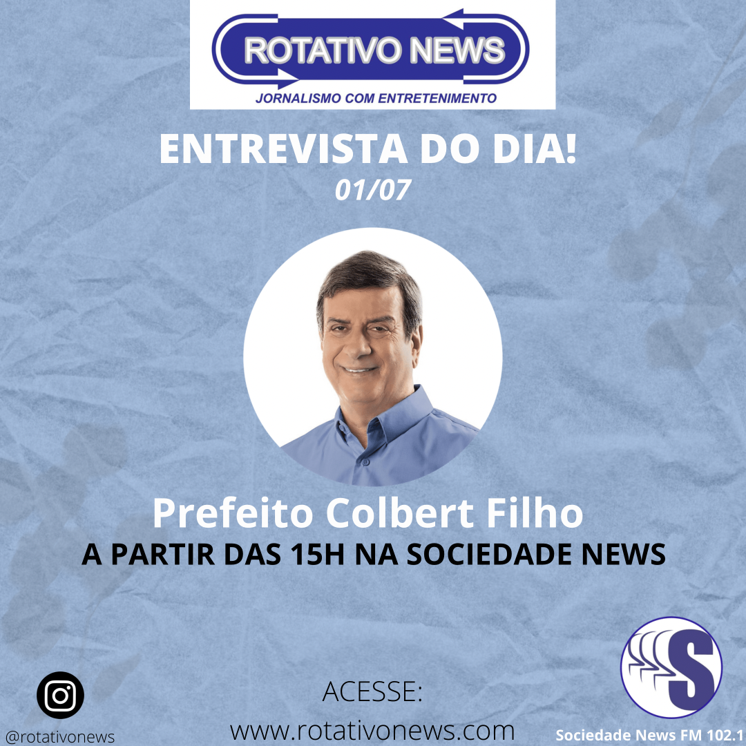 Nesta quinta-feira (01), o prefeito Colbert Filho será entrevistado pelo jornalista Joilton Freitas, no programa Rotativo News, para fazer um balanço sobre os primeiros 6 meses de governo.