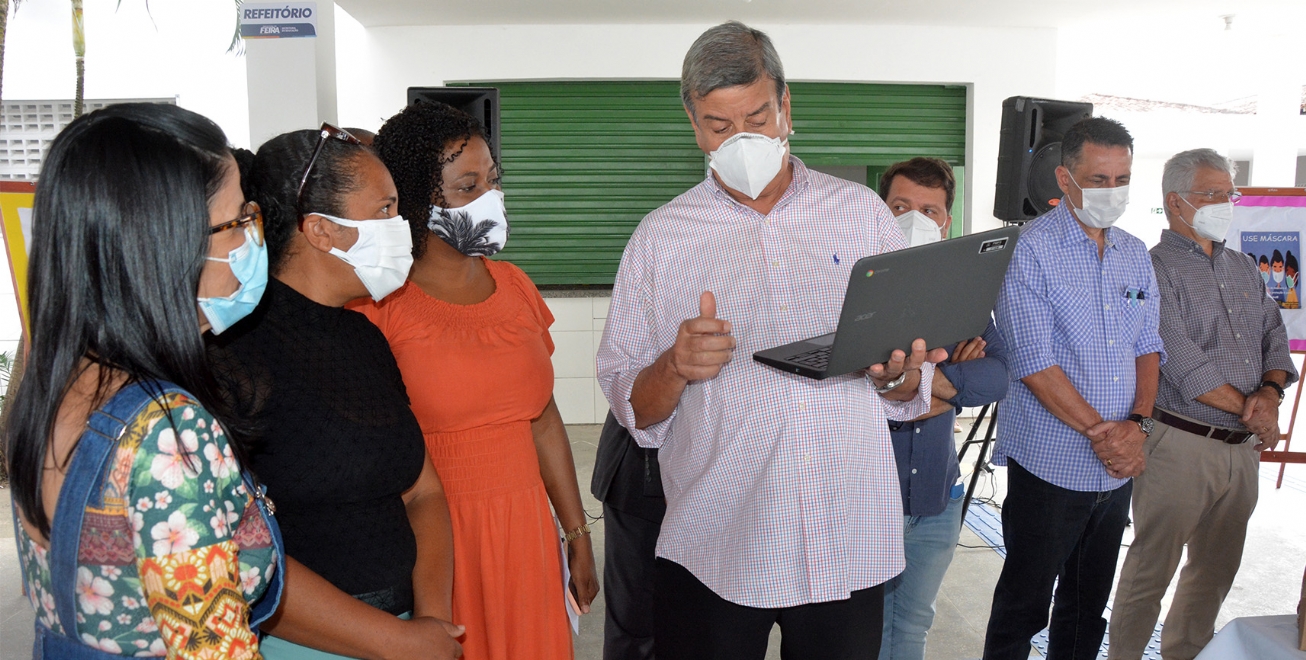 O kit do estudante começou a ser entregue nesta terça-feira, 21, aos alunos da Educação municipal. Em visita à Escola Municipal Jonathas Teles de Carvalho, na Conceição, o prefeito Colbert Martins destacou a distribuição dos materiais para todos os 51 mil estudantes matriculados nas 206 unidades de ensino e o uso dos Chromebooks que começam a ser disponibilizados nas escolas.