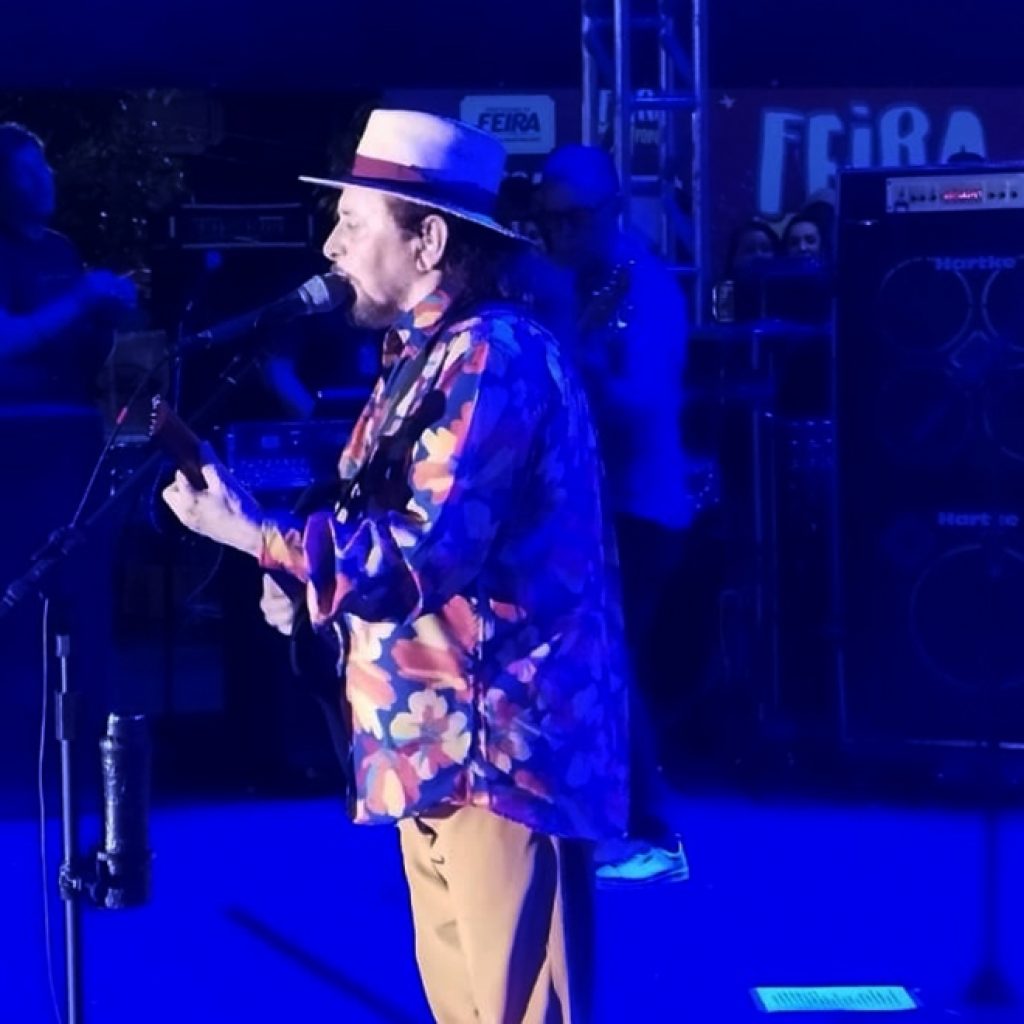 O cantor Geraldo Azevedo encantou o público que lotou o espaço de shows no distrito de Humildes na noite deste sábado (1º), no encerramento das festividades de São Pedro, dentro da programação do Feira Cidade Forró. Com uma trajetória sólida na música popular brasileira, Geraldo trouxe em seu repertório uma seleção de sucessos autorais e de outros compositores nordestinos, encantando a todos.