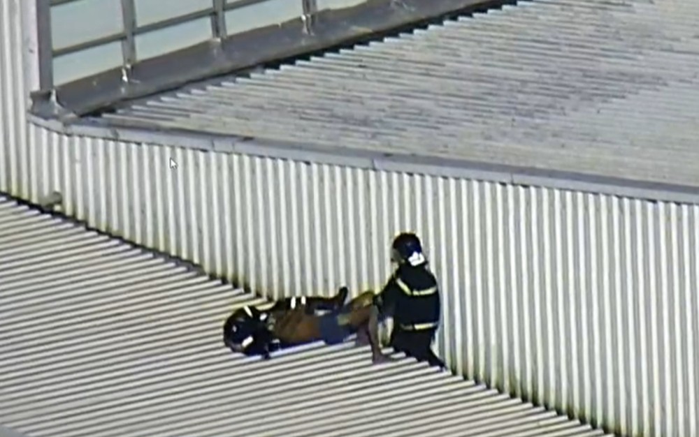 “Como ele estava muito agressivo, não conseguimos dialogar com ele. Precisamos colocar um número maior de pessoas lá em cima para se aproximar e conter fisicamente. Ele foi imobilizado”, explicou um dos bombeiros.