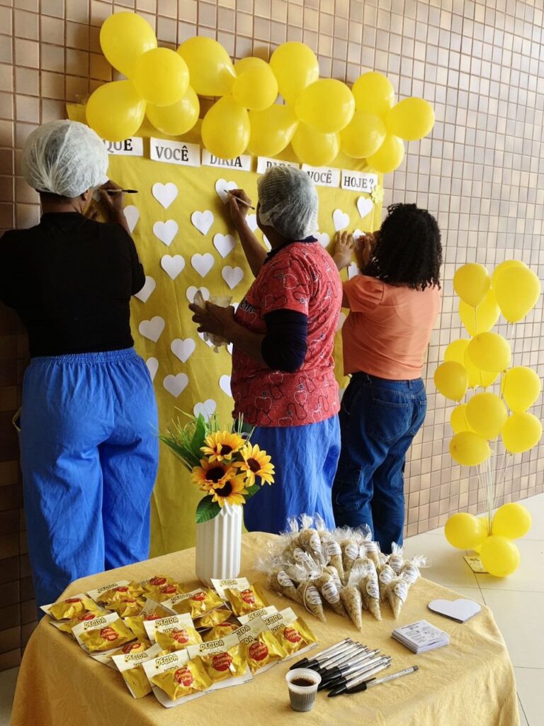 O Hospital Geral Clériston Andrade (HGCA) intensificou suas ações em apoio ao Setembro Amarelo, campanha dedicada à valorização da vida e à prevenção ao suicídio, com uma série de atividades promovidas pelo Serviço Integrado de Atenção à Saúde do Trabalhador (SIAST) e pelo Núcleo de Acolhimento à Família (NAF). As ações incluíram abraços solidários, aromaterapia, massoterapia, ginástica laboral, biodança, rodas de conversa e a “Escola das Emoções”, proporcionando momentos de acolhimento e cuidado para servidores, pacientes e acompanhantes.