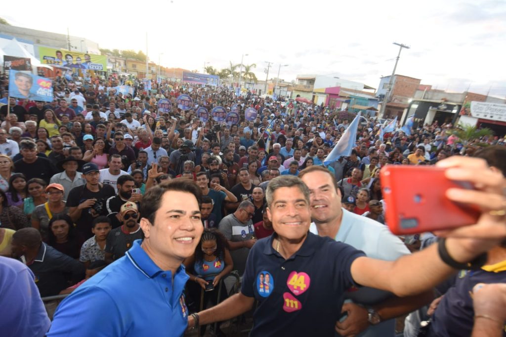 Em Jussara, candidato participou de comício ao lado do prefeito Tacinho Mendes (PP) e disse que baianos não aguentam mais governador que se esconde