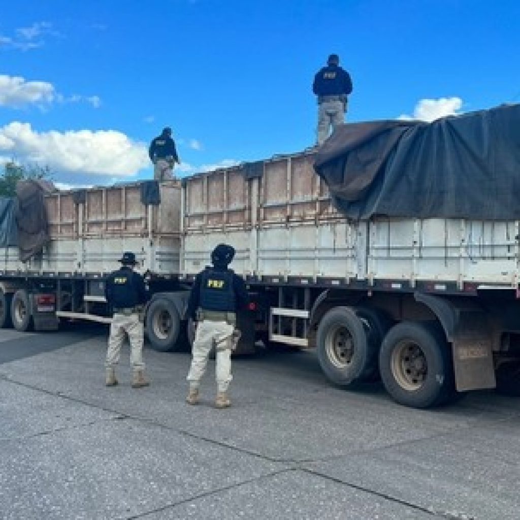 O material foi localizado em um caminhão bitrem após abordagem dos agentes, que receberam denúncia de que um veículo havia sido roubado. Durante as buscas, as equipes identificaram um motorista em atitude suspeita e foi iniciada uma perseguição.