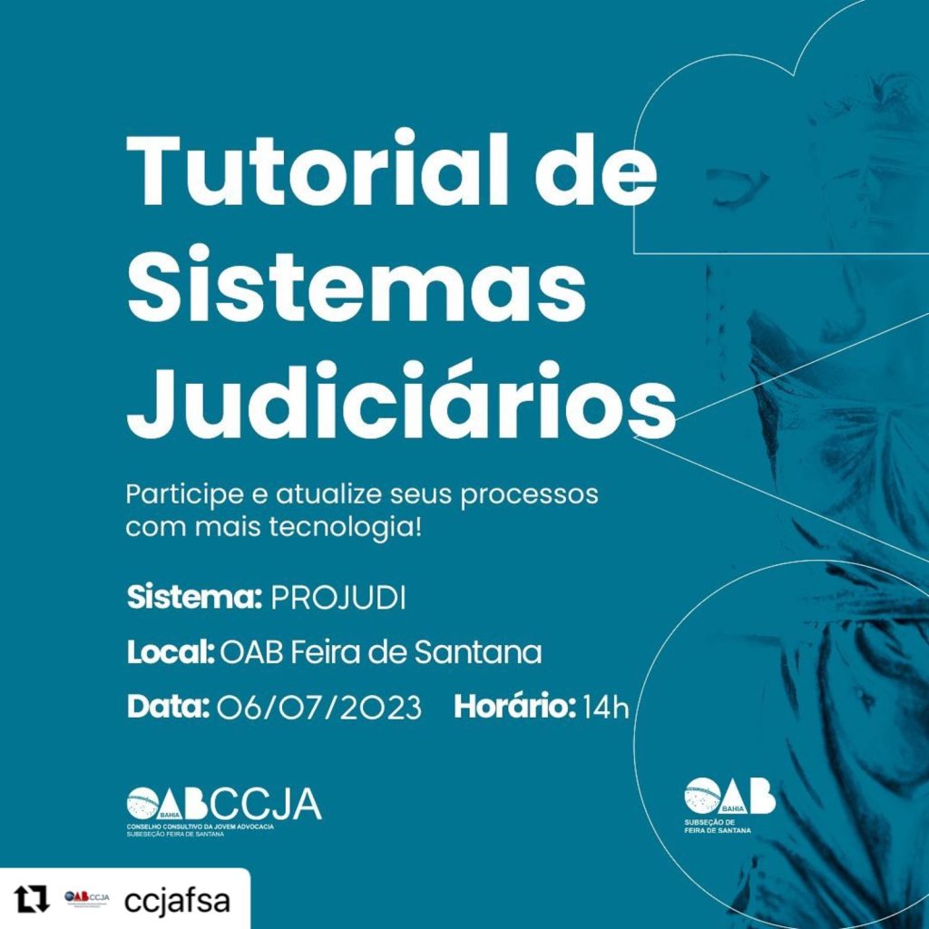 A OAB Subseção Feira de Santana vai sediar, nesta quinta-feira (6), a partir das 14:00, em seu auditório, mais um tutorial de sistemas judiciários. Dessa vez será sobre o sistema Projudi.